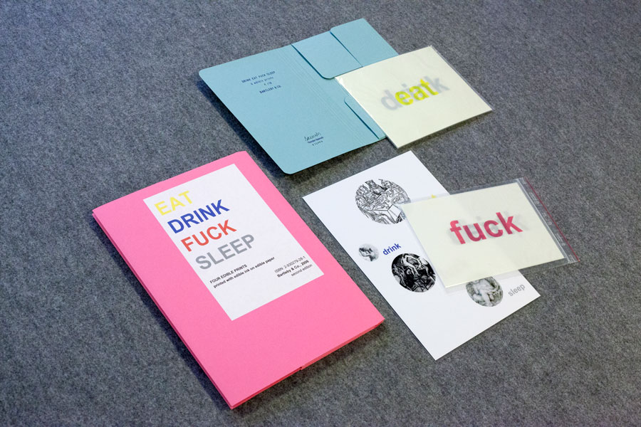 Eat, Drink, Fuck, Sleep 2004 (en) 18 ex. [ pp. 4] Themes CookingEveryday Materials Bound by hand Back to all books